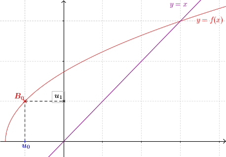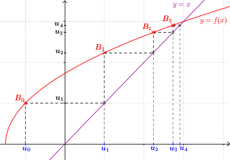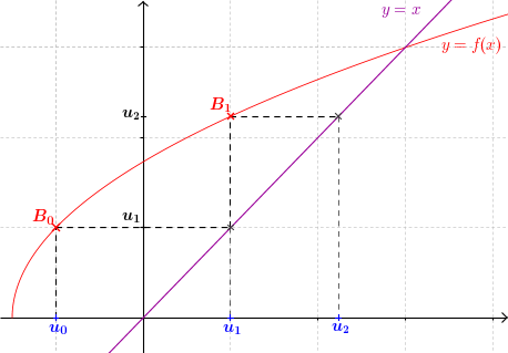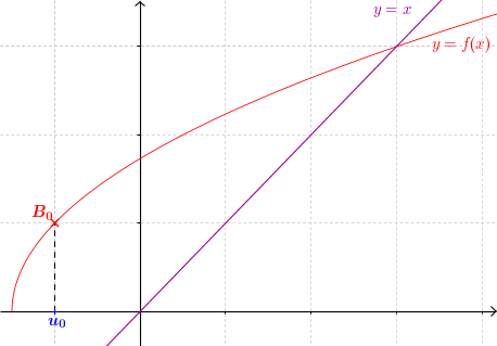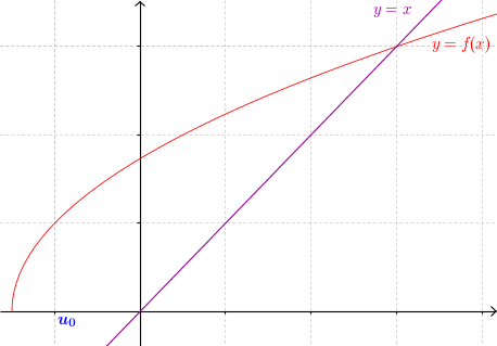 $$ f (x) = \sqrt{2x+3} \text{ et } u_0=-1$$ $$ f (x) = 1+\frac{1}{1+x} \text{ et } u_0=0,2$$