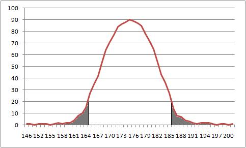 ![]() Tailles d'une population. 5% marginaux coloriés. \(\sigma\) |