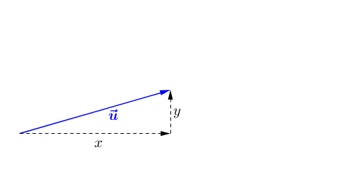 \(\vec{AB}\) peut être décomposé en une translation horizontale de longueur \(x\) et une translation verticale de longueur \(y\). On dit que \(x\) et \(y\) sont les coordonnées de \(\vec{AB}\).