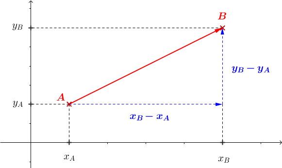 $\vec{AB} = \left ( \begin{array}{c} x_B - x_A \\ y_B - y_A \end{array} \right)$