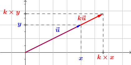 Produit par un réel $k \vec{u} = \left(\begin{array}{c} k x \\ k y \end{array}\right)$