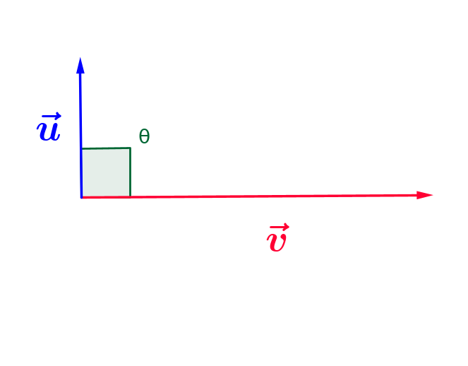 L'angle $\color{green}{\theta} = \frac{\pi}{2}$, donc $\color{green}{cos(\theta)=0}$ et donc le produit scalaire est nul :