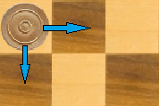 Le déplacement des pions est particulier : lorsqu'un pion est déplacé, il se dédouble en créant un pion à sa droite et un pion en dessous de sa position de départ. Il n'est pas possible de réculer et on ne peut pas 'sauter' par dessus un autre pion.